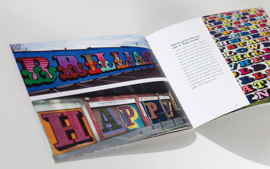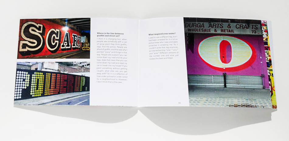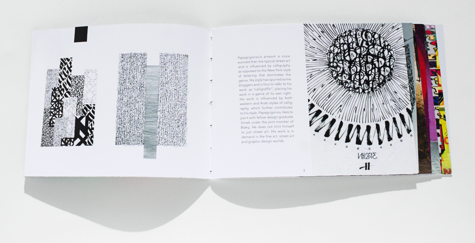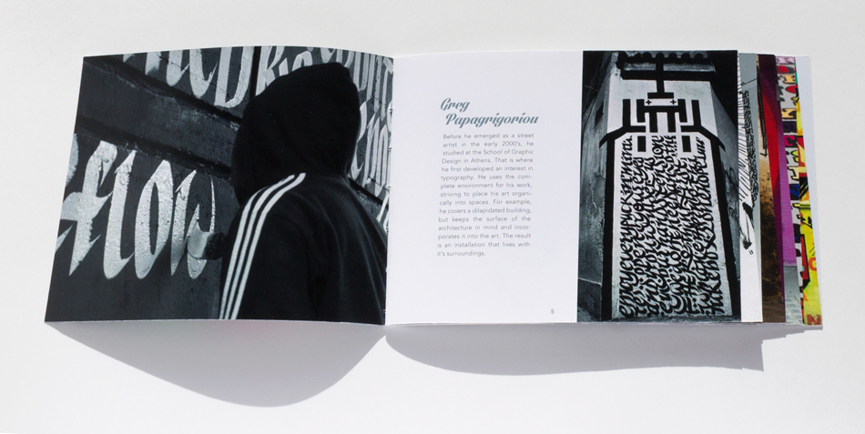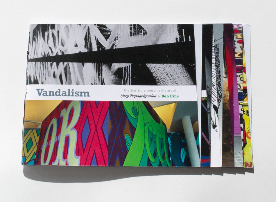 This is a dream gallery I organized to show the work of two prolific vandals who use creative typography in their graffiti. Greg Papagrigorio and Ben Eine have very different styles, but both make bold graffiti in public spaces. This project includes an informational booklet and website with samples of their work and interviews.