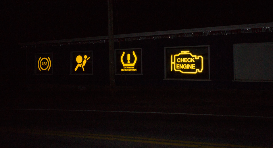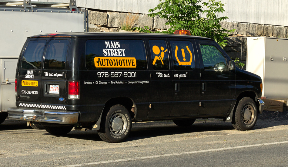 Printers are a special passion for me. From 60" ink jets and Linotype machines to regular ol' laser printers. A big printer for creating signage was a little out of my budget, so I bought a nice plotter for cutting vinyl instead. It has kept me busy with many freelance jobs. The Main Street Automotive material is retroreflective so it glows like a dashboard when lights hit it.
